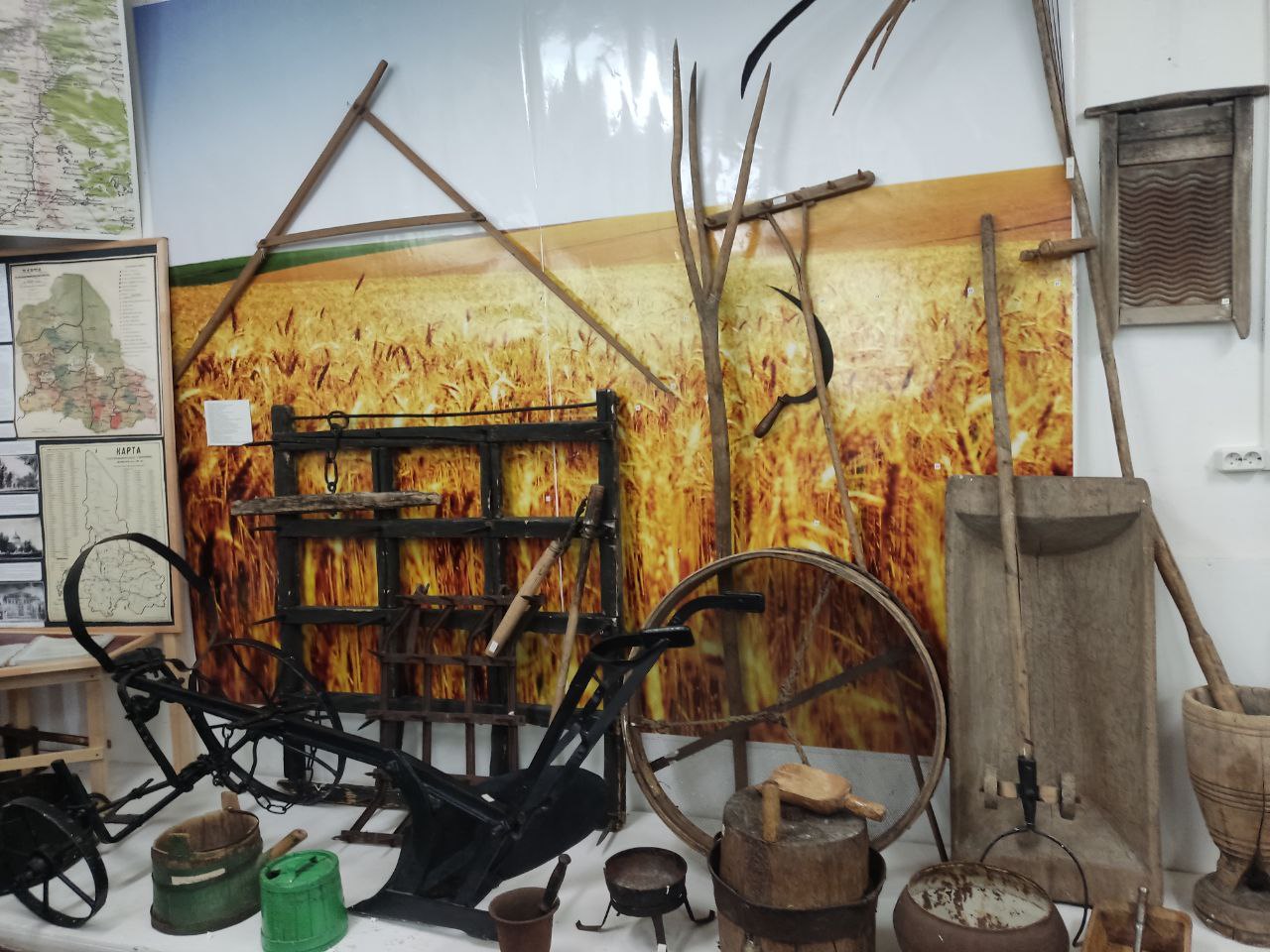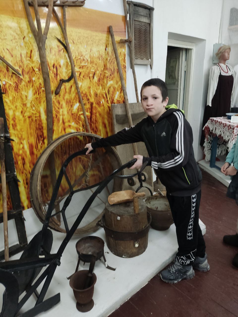 Младшие ребята из агротехнологического класса совершили экскурсию в краеведческий музей села и познакомились с орудиями труда, которыми раньше пользовались при выращивании зерновых культур. А сейчас    "умные" трактора и машины трудятся в нашем хозяйстве ООО Агро Клевер.